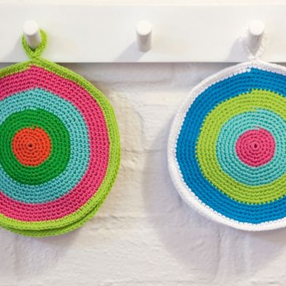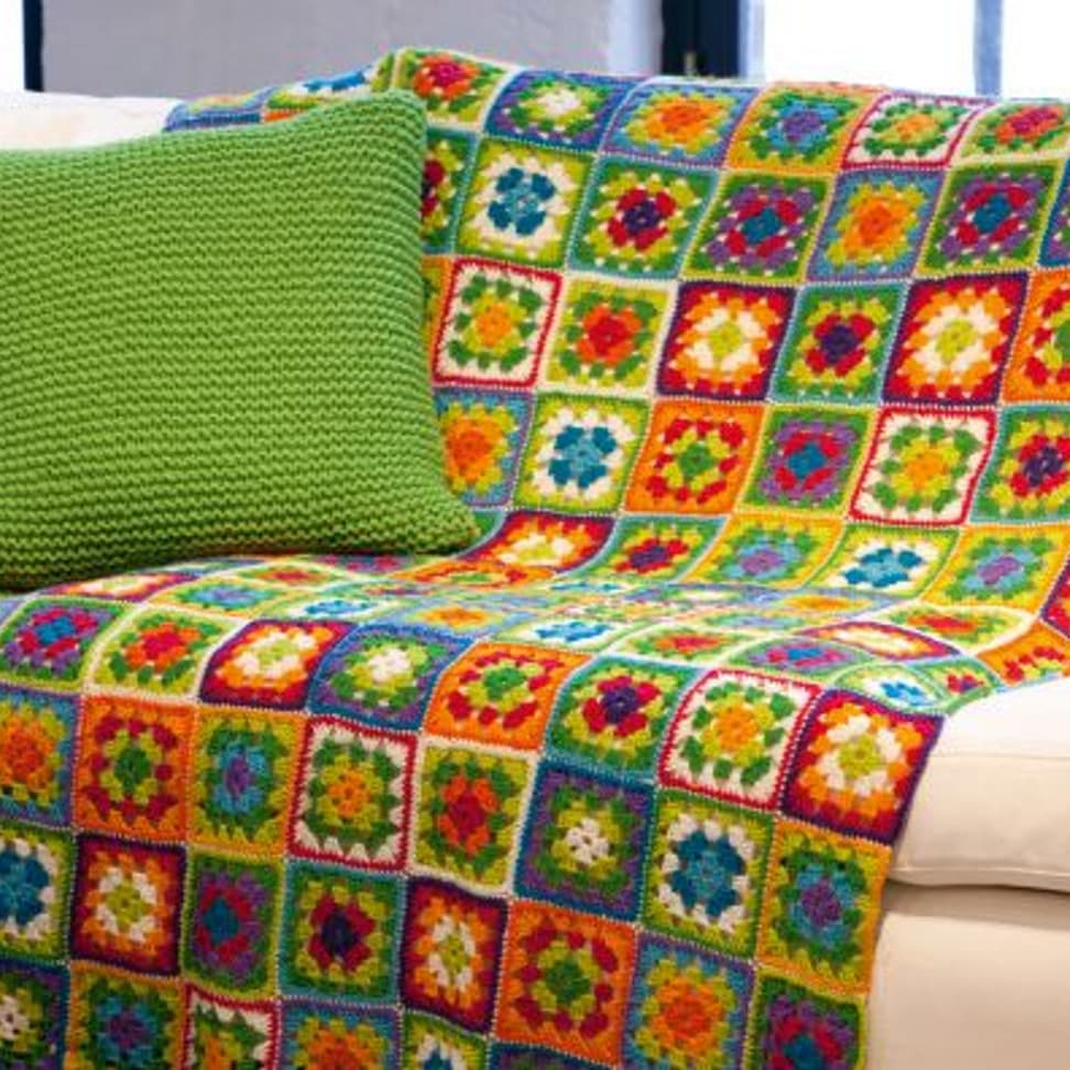 Heklet teppe i gladfarger