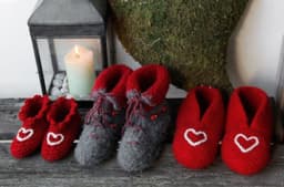 Tovede og heklede tøfler med hjerte