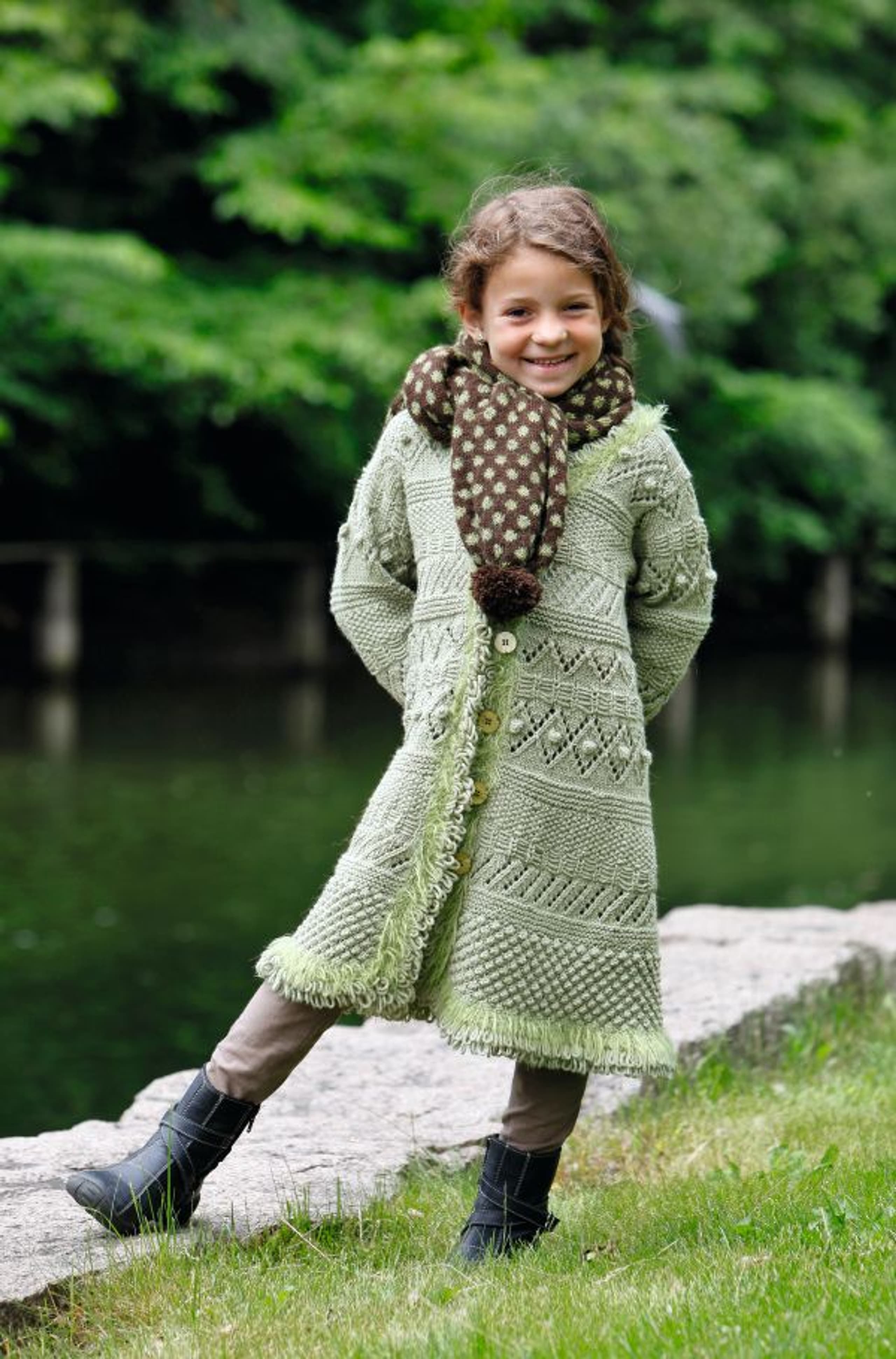 Skjerf med mønster og pomponger