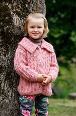 Genser med små blomsterborder og lue