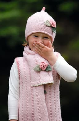 Kjole, lue og skjerf med blomster