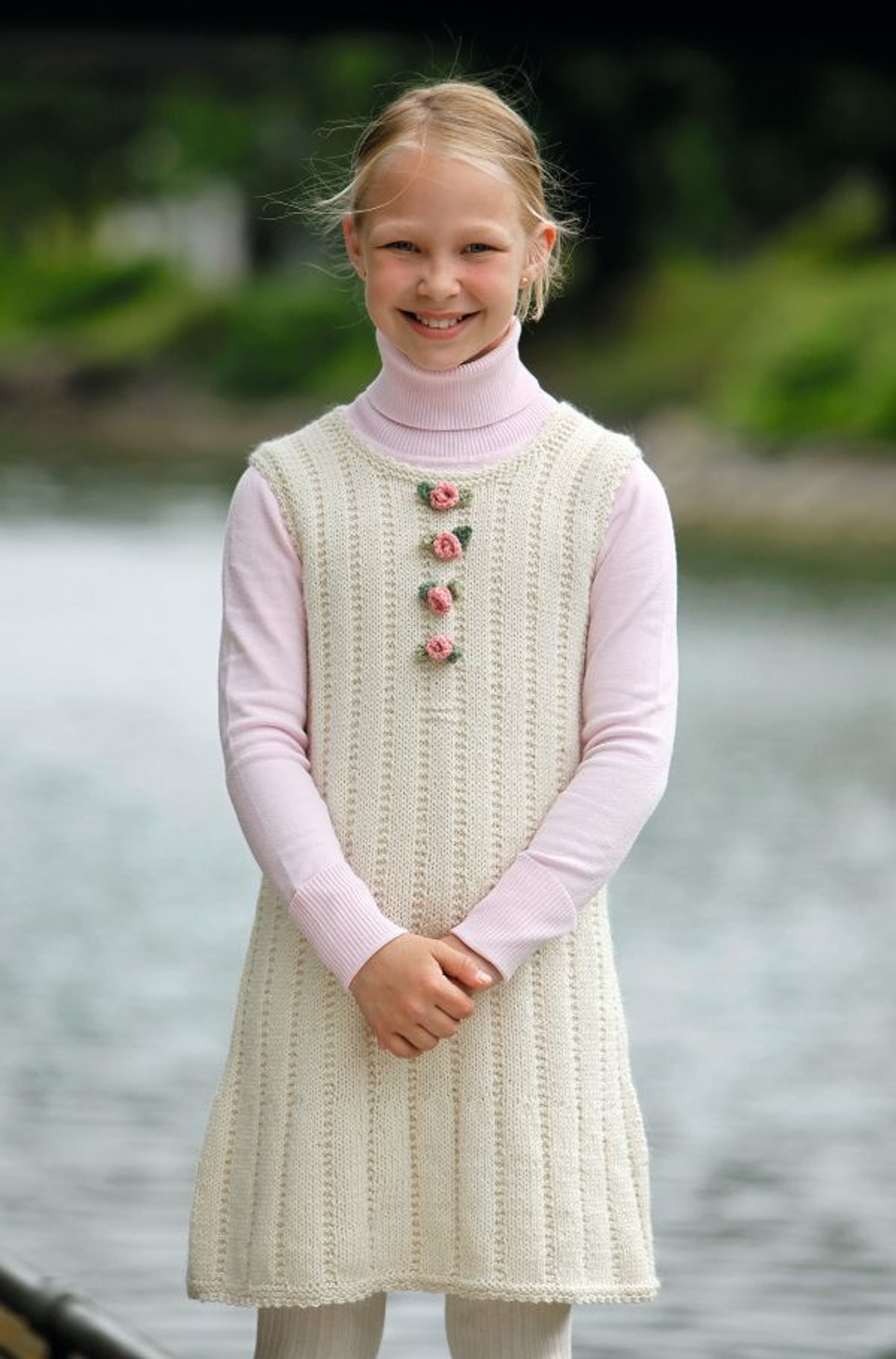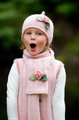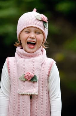Genser med små blomsterborder og lue