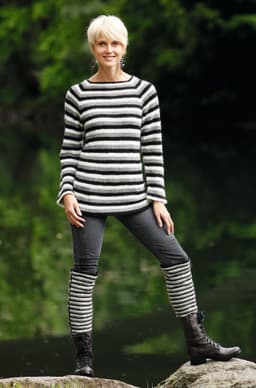 Strømper med flettekant øverst eller med heklede blomster øverst.