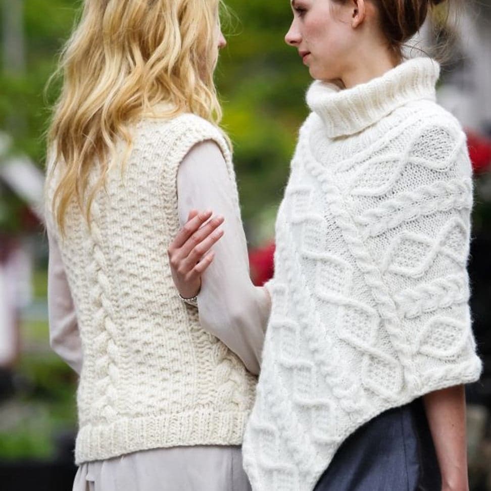 Pt106-1659 - Poncho med fletter og vr-bord-hals og løs hals med fletter - Mod B - Løs hals: Puno