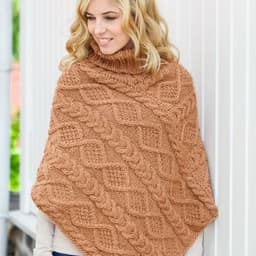 Pt106-1659 - Poncho med fletter og vr-bord-hals og løs hals med fletter - Mod A - Poncho: Vams Pt3