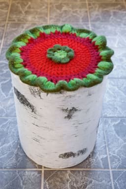 Heklet spisebrikke, mansjett til serviett/bestikk og flasketrekk