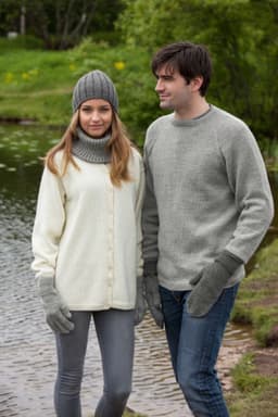 Genser og jakke, raglan med V og rund hals