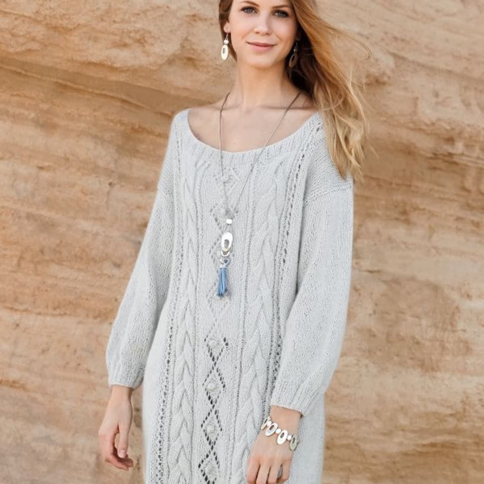Lang genser med riller og frynser