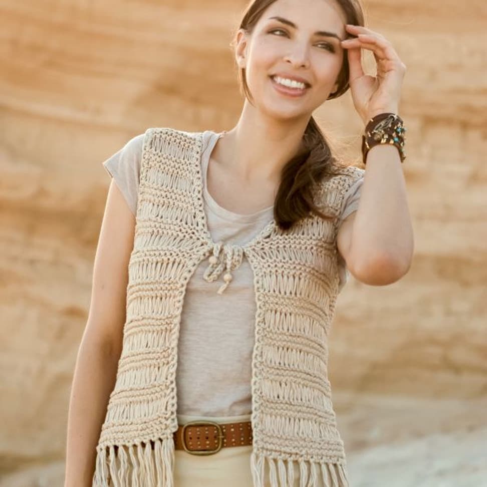 Vest (kort og lang) i hullstrikk og riller