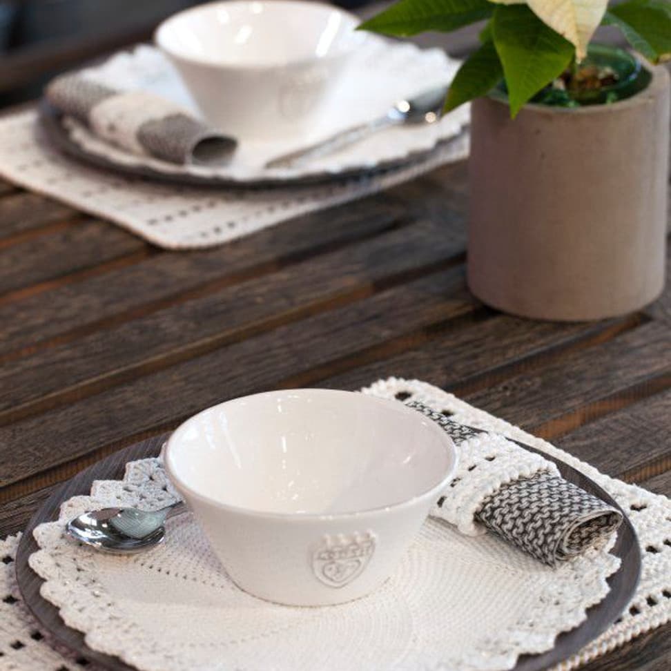 Heklet spisebrikke og serviettring