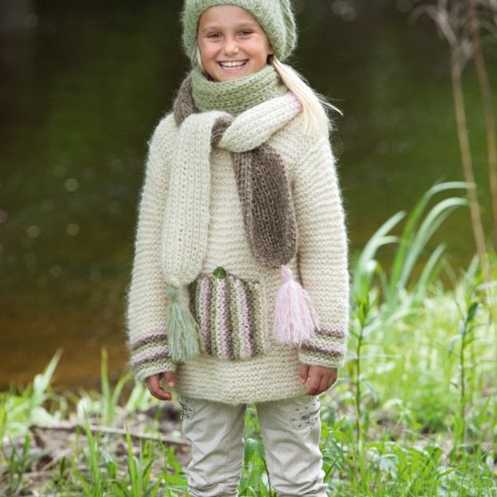Iris Alpakka og Inca Alpakka. Til skjerf, løs hals og lue: Bruk restegarnet og suppler ved behov.
