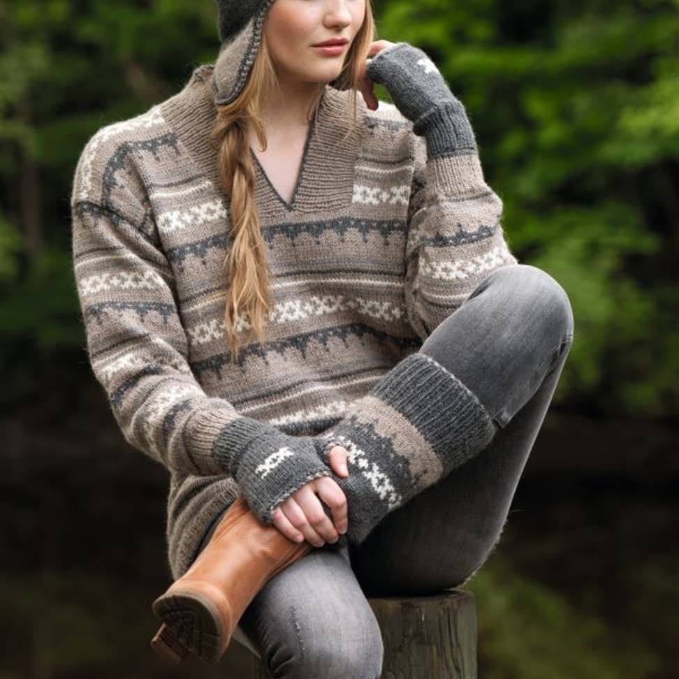 Plaggene er strikket i deilige Mitu - 50% Ull og 50% Alpakka Du får mønster til lue, torgvanter og leggvarmere på samme oppskriften!