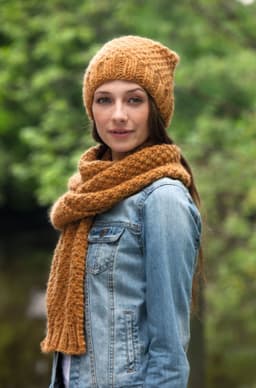Lue og skjerf i dobbel perlestrikk