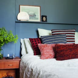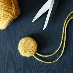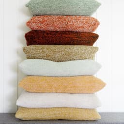 Rauma Finullgarn eller Pt2. Puten strikkes med to ulike farger samtidig slik at det blir en spennende melert effekt. Her er det bare å prøve seg fram med farger! Lag en "tovet knapp" med restegarn til den store puten eller bruk en vanlig knapp.