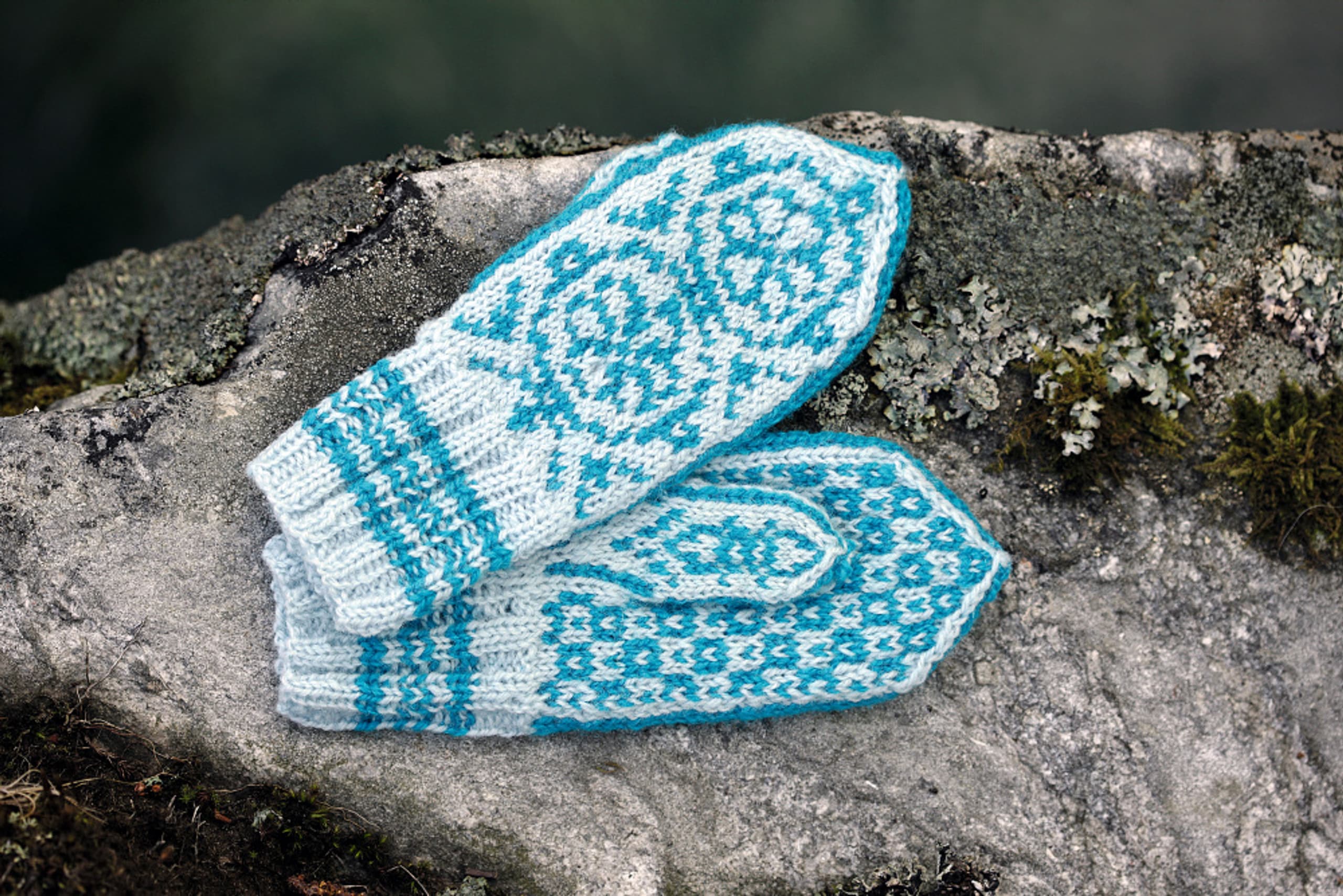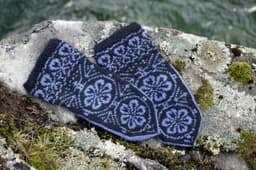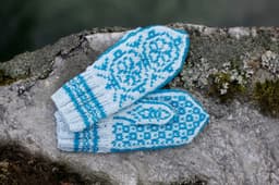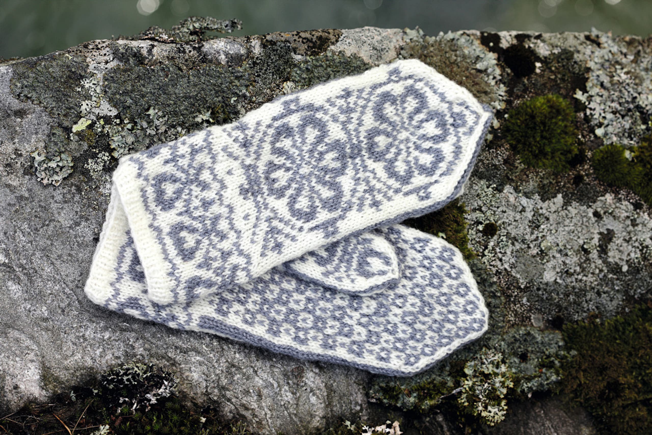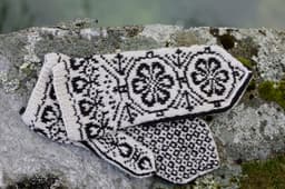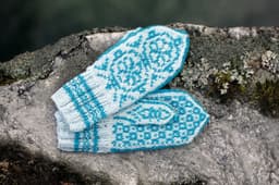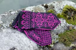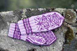 Værnesrose votter til barn og voksen strikket i Finull.