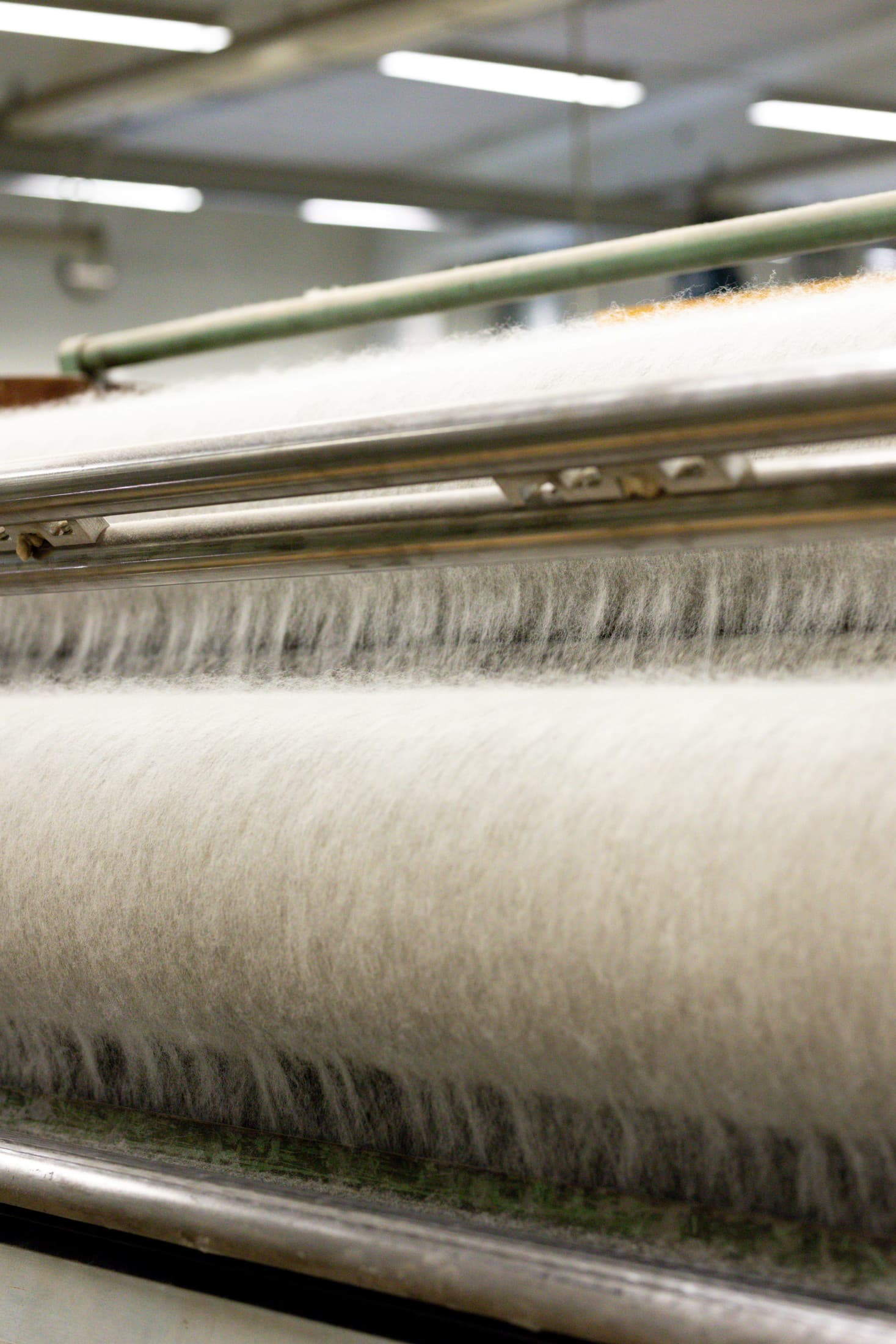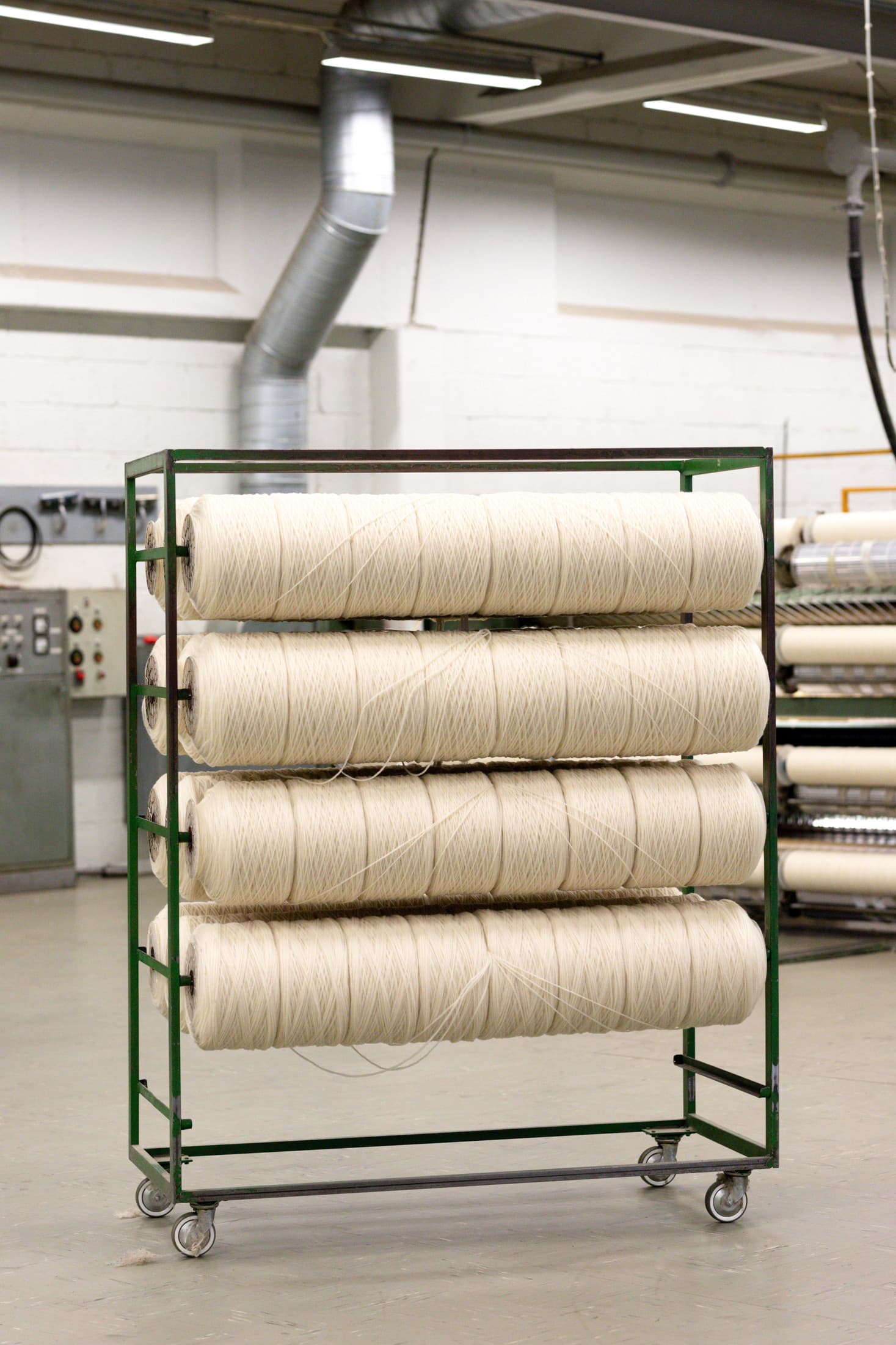 Forgarnet rulles opp på store sneller som skal videre til spinning.